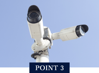 1階の物件はどうしてもバルコニーからの侵入など不安があります。防犯カメラの設置など防犯設計でその不安を解消します。