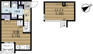 洋室6.1畳 1階 1室 その他5.3畳 1階 1室 ロフト有 |
